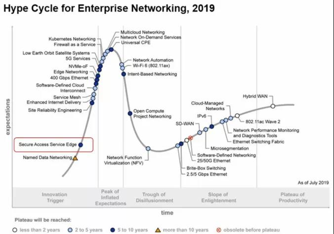 但就在2019年7月,曾发表过《零信任架构及解决方案》白皮书的Gartner公司,又扔出了一个更加“劲爆”的“炸弹”。Gartner提出了一个比“零信任”更高一个维度的概念,即“SASE”(安全访问服务边缘模型)。