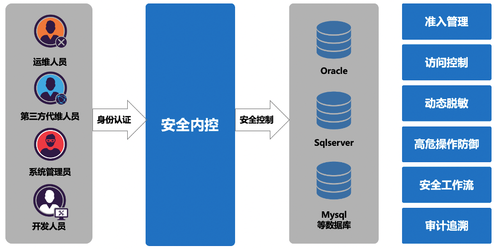 ❷ 加强数据安全防护体系:提供数据库准入能力、访问控制能力、动态脱敏能力、审计能力、增强数据安全防护能力,减少数据资产泄露风险。