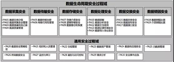 在此基础上,DSMM将上述6个生命周期进一步细分,划分出30个过程域。这30个过程域分别分布在数据生命周期的6个阶段,部分过程域贯穿于整个数据生命周期。