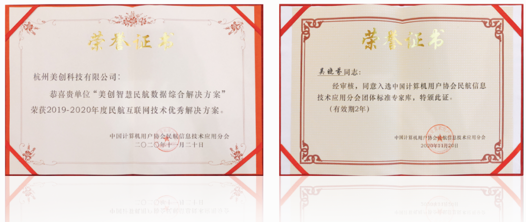 在2019-2020年度“E航”奖系列评选表彰活动中,美创科技智慧民航数据综合解决方案凭借产品创新性和技术优势,荣获“年度民航互联网技术优秀解决方案奖”,并以民航技术服务优秀厂商代表入选民航信息化相关标准制定专家库,积极参与团体标准建设。