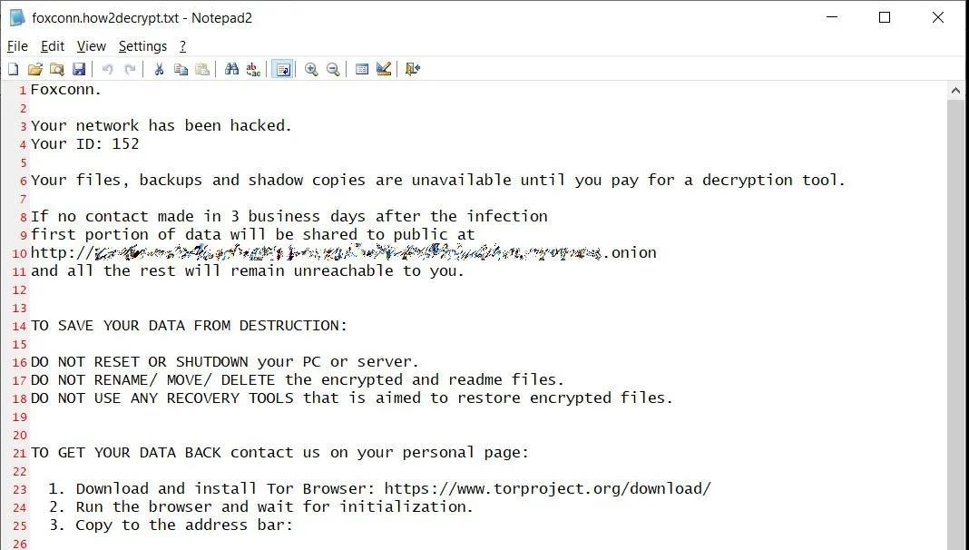 自攻击以来,DoppelPaymer勒索软件在其勒索软件数据泄漏网站上发布了属于富士康的文件,该生产设施的官网已瘫痪,DoppelPaymer勒索软件团伙声称已加密了约1200台服务器,窃取了100GB的未加密文件,并删除了20TB至30TB的备份内容。