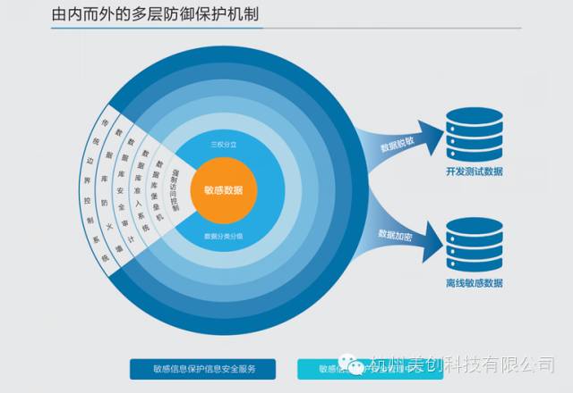 美创敏感数据保护安全中心由数据库准入、数据库堡垒机、数据库安全审计、数据库防火墙、数据脱敏系统、数据库透明加密系统构成。强调核心敏感数据的保护和防御,构建了由内而外的多层防御保护机制。