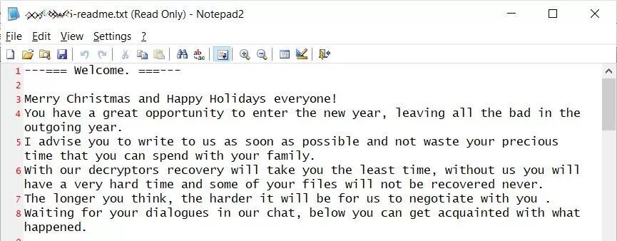 勒索软件攻击者更改成与节日相关的勒索信
