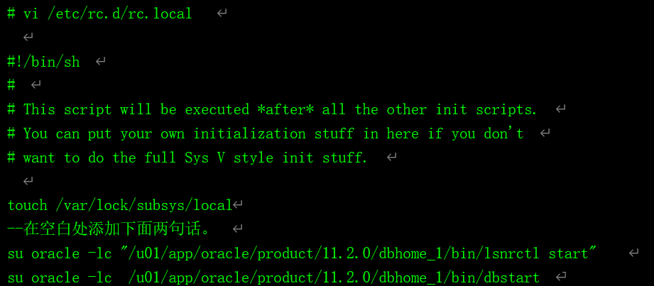 登录服务器一检查发现原来数据库并未启动!赶紧把数据库拉起来,通过和客户沟通以及进一步的排查发现原来机房发生了断电,在断电恢复后,服务器自动起来,新装的数据库服务和监听却都没有起来,后续进行了自启动配置,方式如下: