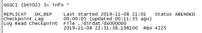 当OGG进程遇到异常,查看进程状态时一般会看到下面这样的信息