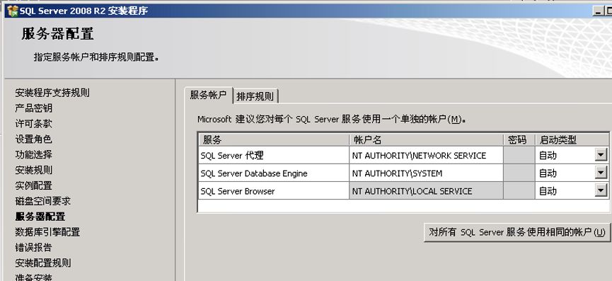 客户要求一般都是只需要设置SQL Server服务启动帐号和 sql agent启动帐号为localsystem就可以了。