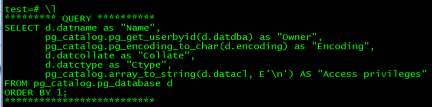 如果想知道这些快捷命令底层调用的语句是什么,只需要在pslq登陆的时候,加上 “-E”即可!