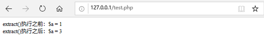 原本变量$a的值为1,经过extract()函数对变量$b处理后,变量$a的值被成功覆盖为了3.
