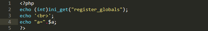 还有一种情况,通过$GLOBALS获取的变量在使用不当时也会导致变量覆盖,同样漏洞触发的前提是register_globals为ON,如下图所示,已成功通过注入GLOBALS`a`来改变$a的值: