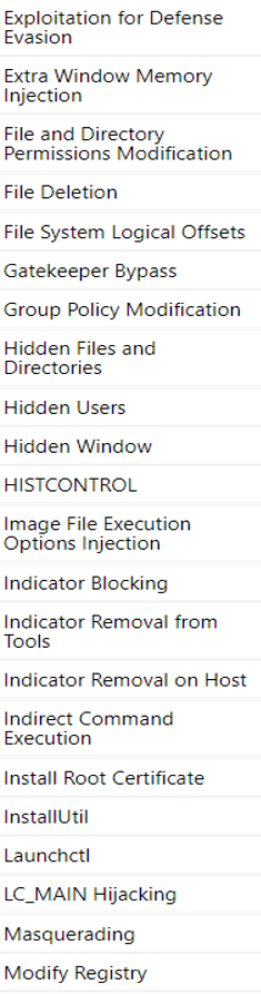 “防御绕过”战术直至目前最新版的ATT&CK框架,仍是拥有技术最多的战术,目前包含69项技术。而防御绕过中有一些技术可以让一些恶意软件骗过防病毒产品,让这些防病毒产品根本无法对其进行检查,又或者绕过白名单技术。例如,修改注册表键值、删除核心文件、禁用安全工具等等。当然作为防御者的我们,在应对此类战术时可以通过监视终端上的更改并收集关键系统的日志将会让入侵无处遁形。