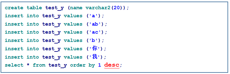 我们来看看,字符串的排序顺序是什么。咱先创建个表。