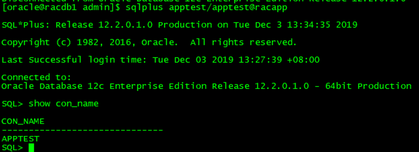 创建好了Application容器和用户后,需要在tnsnames.ora中配置连接信息才能连接Application容器apptest(从这点可以看出Application和PDB类似)。