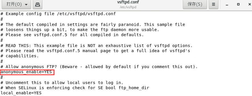 ① 禁用匿名登陆在/etc/vsftpd.conf文件中,将允许匿名用户登录这一行设置为no,即anonymous_enable=NO