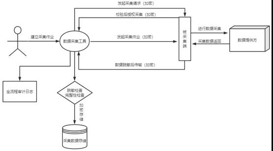 受限于篇幅,此处技术工具不进行进一步展开,下图为数据采集安全管理的技术工具进行数据采集作业的基本流程图。