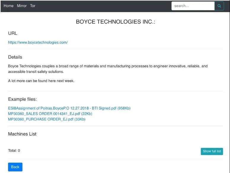 在新型冠状病毒肺炎大流行期间,DoppelPaymer团伙对呼吸机制造商Boyce Technologies部署了勒索软件并发起攻击。安全研究人员查看了DoppelPaymer的博客,该网络犯罪团伙列出了攻击期间被盗数据的示例文件,包括销售和采购订单,分配表格等。DoppelPaymer团伙威胁说,如果Boyce Technologies未支付赎金,下周将通过该网站披露更多信息。