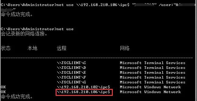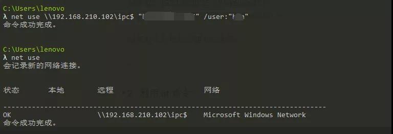 可能到这里会有一些人有疑问,为什么我都知道了目标机的用户名和密码还要使用IPC?因为在真实环境中,并不是内网的所有机器都开放了3389(远程桌面)让你登陆,对于一些没有开启该服务的机器想要控制它就必须得通过IPC连接的方法了。而且要想直接获取目标机的用户名和密码是比较困难的,在不知道口令的情况下想要直接通过远程桌面来进行爆破是行不通的,但是IPC不仅可以批量爆破,还允许匿名登陆,所以IPC连接具有更强的灵活性。
