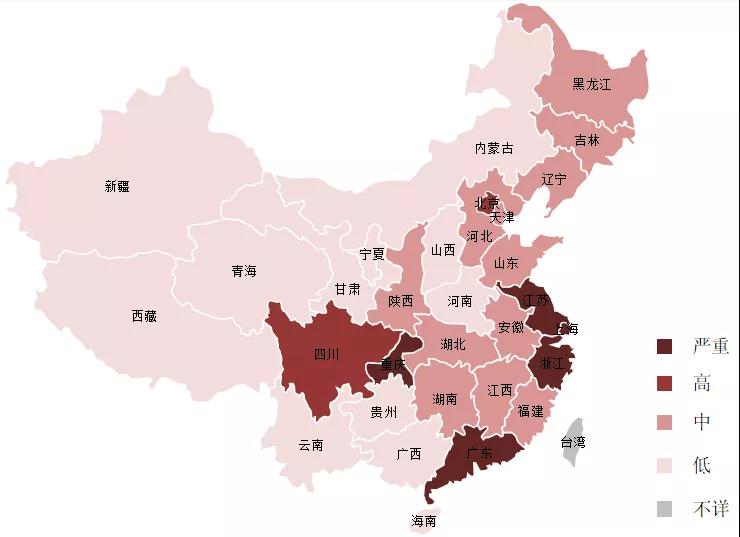 10月份国内遭受勒索病毒攻击的地区分布图如下所示,依然是经济活跃地区的病毒威胁比其他地区要严重。