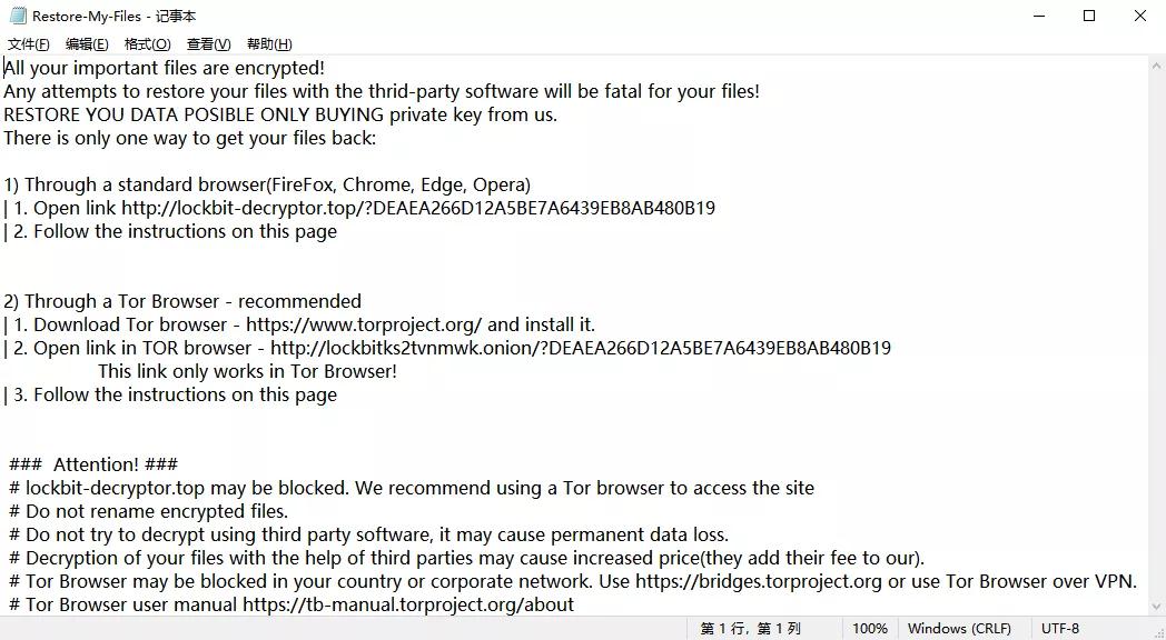 中国作为拥有10亿多网民的网络应用大国,毫无疑问成为勒索病毒攻击的重要目标,一部分勒索病毒运营者开始在勒索信、暗网服务页面提供中文语言界面。