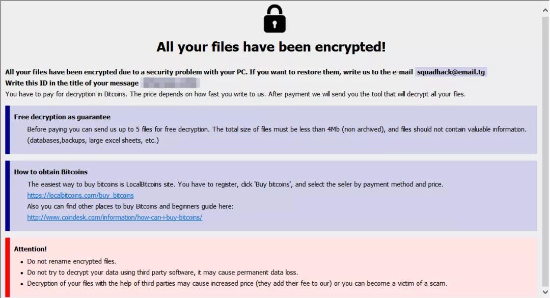 11月10日,某港口工程公司遭勒索病毒攻击,十几台服务器中招。服务器中的所有文件都被添加了.id`XXXXXXXX-XXXX`.`geerban@email.tg`.