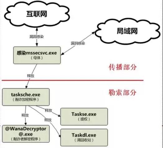 WannaCry是一种“蠕虫式”勒索病毒软件,由不法分子利用NSA泄露方程式工具包的危险漏洞“EternalBlue”(永恒之蓝)进行传播。该蠕虫感染计算机后会向计算机中植入敲诈者病毒,导致电脑大量文件被加密。