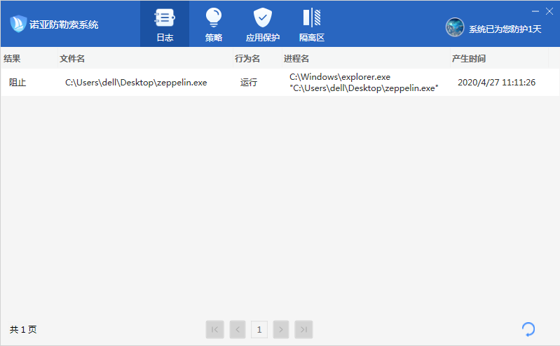 为了更好的应对已知或未知勒索病毒的威胁,美创通过对大量勒索病毒的分析,基于零信任、守白知黑原则,创造性的研究出针对勒索病毒的终端产品【诺亚防勒索系统】。诺亚防勒索在不关心漏洞传播方式的情况下,可防护任何已知或未知的勒索病毒。以下为诺亚防勒索针对这款勒索病毒的防护效果。