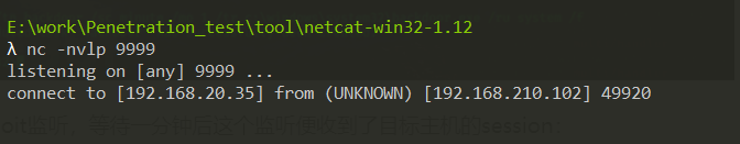 在攻击机上监听端口9999,马上就接收到目标机弹回来的shell,且目标机每次重启都会启动backdoor服务。