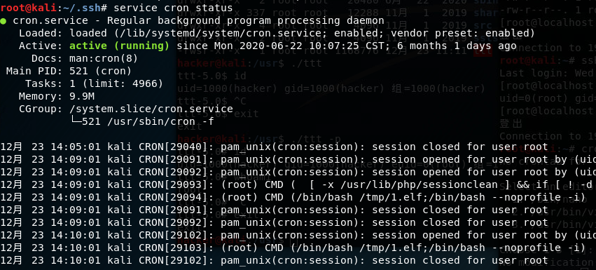 与Windows一样,Linux也提供了计划任务程序,在Linux系统中计划任务一般是由cron承担。我们使用cron添加一个反弹shell的计划任务,以实现权限维持。