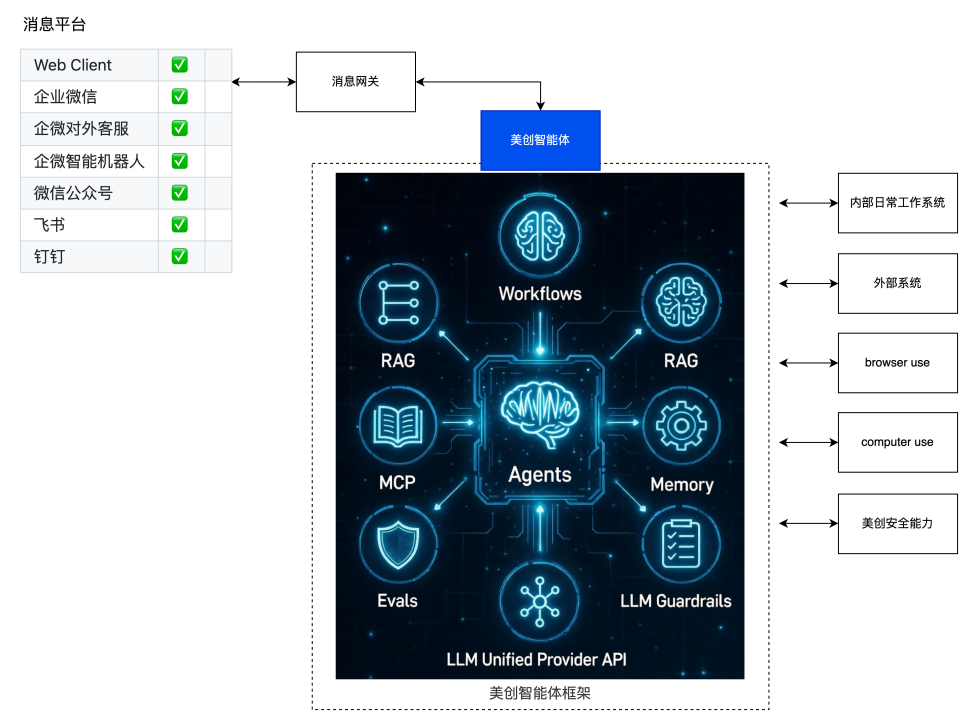 美创智能体框架不仅支持多种大模型统一调用,还实现了企业级安全、可控、可评估、可落地的完整闭环,是我们所有AI员工的“操作系统”与“数字神经网络”。