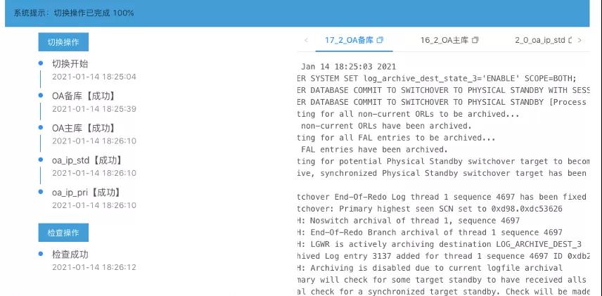 04至此整个演练过程顺利完成,数据零丢失,用户侧对系统切换几乎无感知。而且切换过程还可见,各种关键环节,关键指标实施展现,切换过程一目了然。