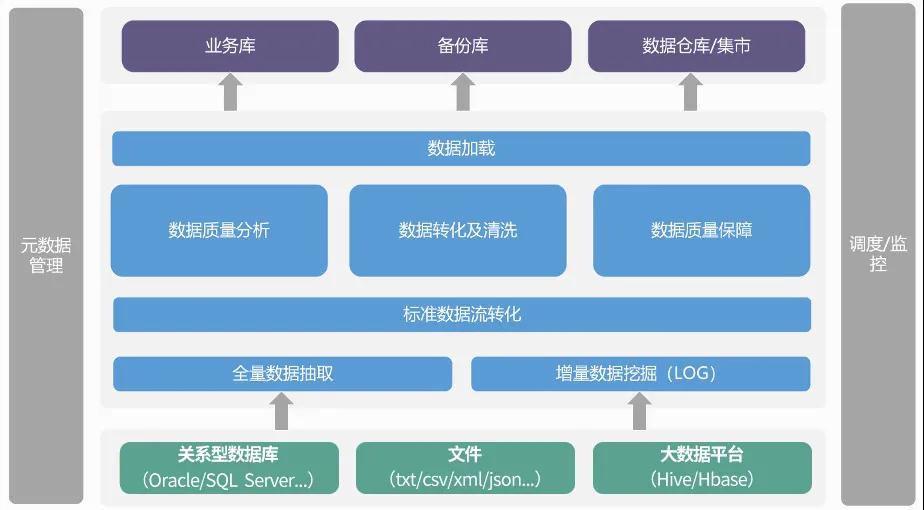 数据支撑平台是美创科技数据治理方案中必不可少的工具支撑,平台集数据抽取、清洗、转化、装载于一体,是通过对企业业务系统数据进行标准化,向数据仓库或大数据分析平台提供高质量数据的综合性平台。
