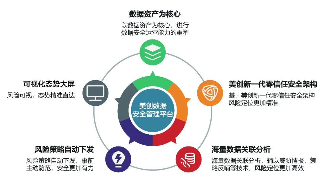 数据出境安全治理服务 数据安全能力评估认证服务 数据安全风险评估服务 数据安全治理咨询服务 数据分类分级咨询服务 个人信息风险评估服务 数据安全检查服务近日,美创数据安全管理平台正式发布,新品旨在充分盘活用户数据安全防护场景,为各行业用户提供“全域监控、全域联动、统一运营、联合响应”的体系化数据安全能力支撑。