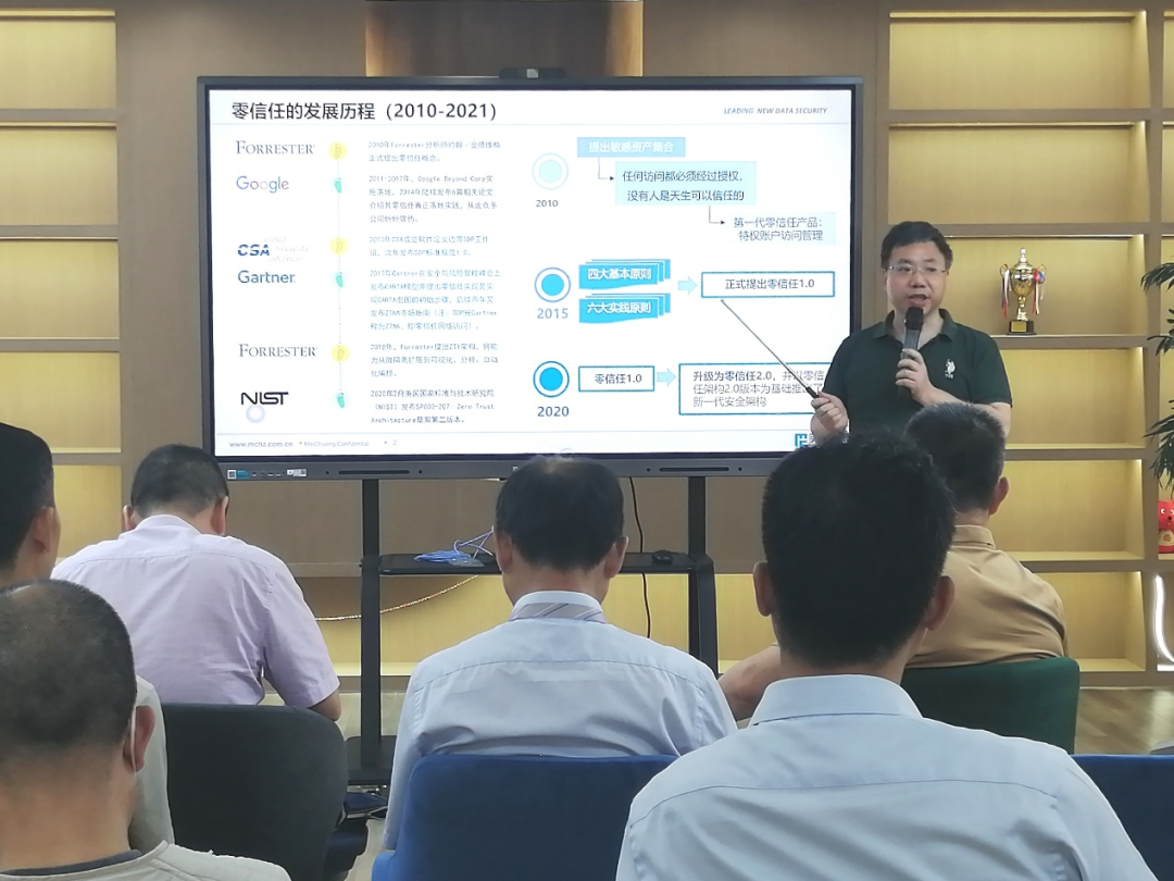数据出境安全治理服务 数据安全能力评估认证服务 数据安全风险评估服务 数据安全治理咨询服务 数据分类分级咨询服务 个人信息风险评估服务 数据安全检查服务6月10日,由省网络空间安全协会主办,省网络空间安全协会数据安全治理专委会、北航杭州研究院网络空间安全研究中心、杭州美创科技有限公司承办,省网络安全教育培训中心协办的“之江网安论坛”系列沙龙——零信任安全框架与应用落地,在杭州顺利举办。