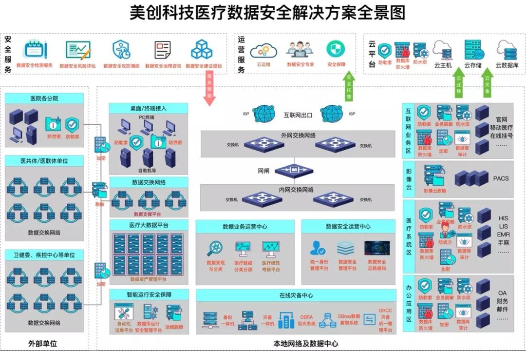 美创科技在数据安全建设方面持续领先,医疗行业是美创科技关注的重点行业之一,面向医疗行业推出数据安全综合解决方案,如图3所示。