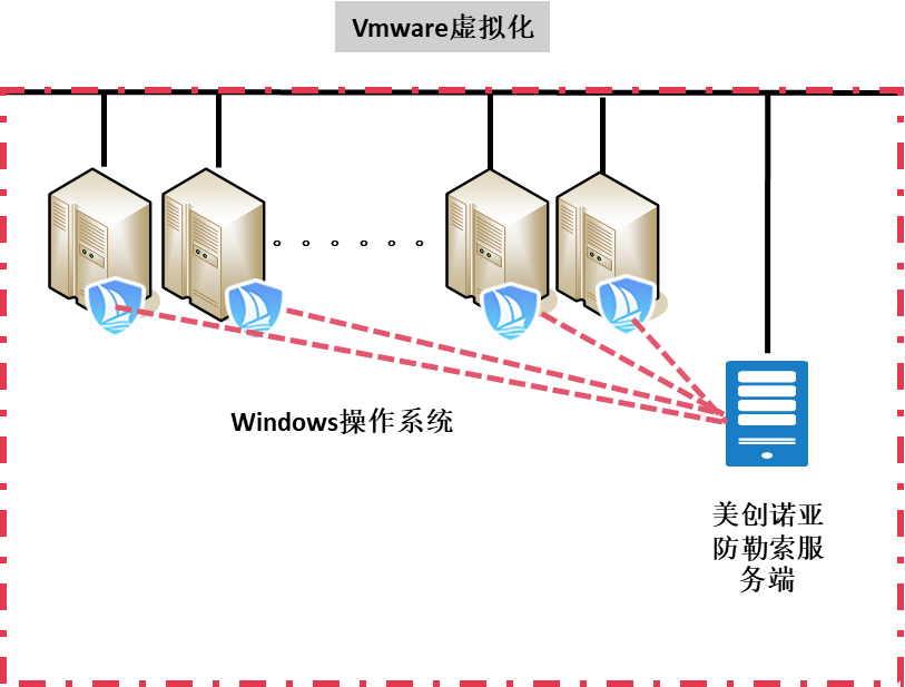 主动求变,“不在阴沟里第二次翻船”,经过前期沟通以及筛选考察,该公司最终选择拥有丰富实践经验的美创诺亚防勒索系统,对应用业务系统进行保护。本次主要针对部署在windows操作系统上的应用系统进行勒索病毒防御建设。