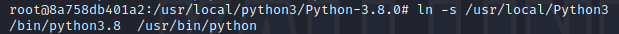 ln -s /usr/local/Python3/bin/python3.8 /usr/bin/python