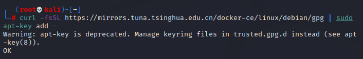 curl-fsSL https://mirrors.tuna.tsinghua.edu.cn/docker-ce/linux/debian/gpg | sudo apt-key add -
