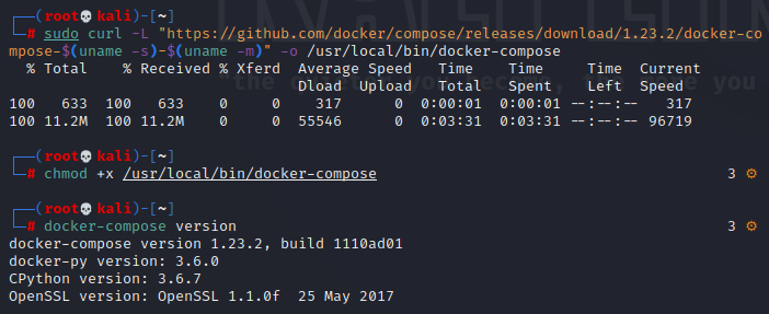 sudo curl-L"https://github.com/docker/compose/releases/download/1.23.2/dockercompose-$(uname-s)-$(uname -m)"-o/usr/local/bin/docker-compose chmod +x /usr/local/bin/ docker-composedocker-compose version #查看版本号,测试是否安装成功