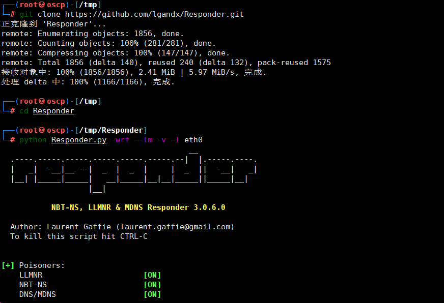 git clone https://github.com/lgandx/Responder.git python Responder.py -wrf --lm -v -I eth0