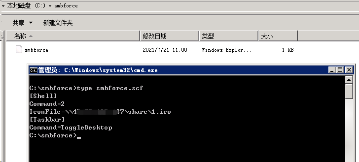 编辑保存后将恶意scf文件放置到smb共享服务器中