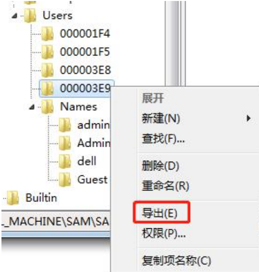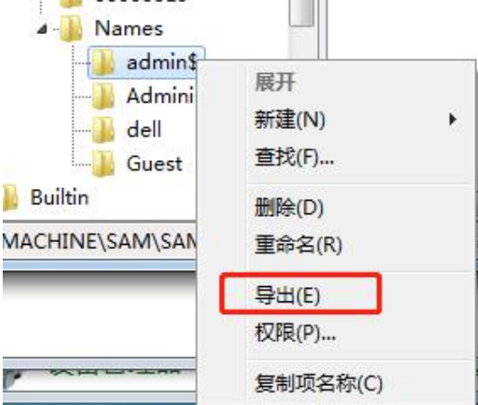 (4)接下来导出一下我们刚才导出 admin$用户的注册表,我命名为 admin$.reg