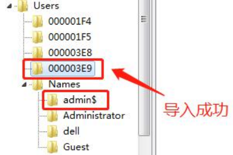 (8)这时候 adminis.reg 可以删除了。依次双击 admin$.reg、3E9.reg,即可,注册表里已经出现 admin$的注册表。